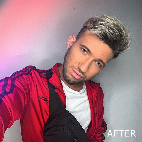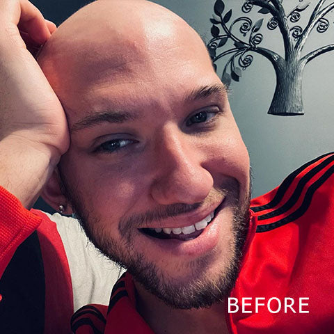 - Position hair system: starting by gently sticking the tip of the system in the center of the forehead, slowly continue sticking the system in a gradual rolling back movement, making sure that it’s even on each sides, until it comes sit nicely all the way to the back, covering the whole shaved area.Then wait for styling.
