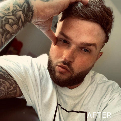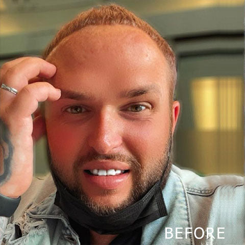 - Position hair system: starting by gently sticking the tip of the system in the center of the forehead, slowly continue sticking the system in a gradual rolling back movement, making sure that it’s even on each sides, until it comes sit nicely all the way to the back, covering the whole shaved area.Then wait for styling.