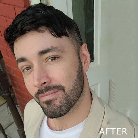 - Coloque el sistema capilar: comience pegando suavemente la punta del sistema en el centro de la frente, continúe pegando lentamente el sistema con un movimiento gradual hacia atrás, asegurándose de que esté parejo en cada lado, hasta que se asiente bien hasta el final. la espalda, cubriendo toda la zona afeitada. A continuación, espera a peinarte.